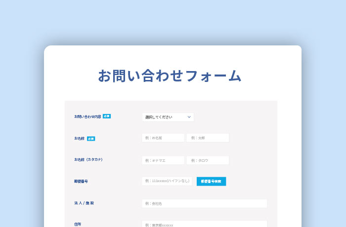 郵便番号から住所の自動入力機能や、ふりがなの自動入力など、入力負荷を軽減する機能も効果的です。プルダウンメニューでは「選択してください」など、初期状態を明示することで操作ミスを防げます。