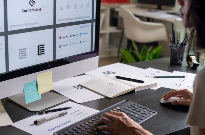 アイコン(装飾的な小さな画像)についても、ロゴと同じテイストで設計します。例えば、ロゴが「シンプルで温かみのある」デザインであれば、アイコンも同じく、複雑でなく温かみのあるスタイルで統一します。