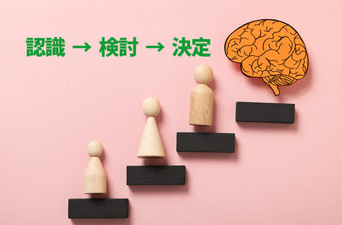 心理学の研究によれば、ユーザーが行動を起こすまでの心理プロセスは、「認識 → 検討 → 決定」という3段階を経ます。そして、この3段階のどの地点で、問い合わせフォームが提示されるかで、反応率が大きく変わるのです。