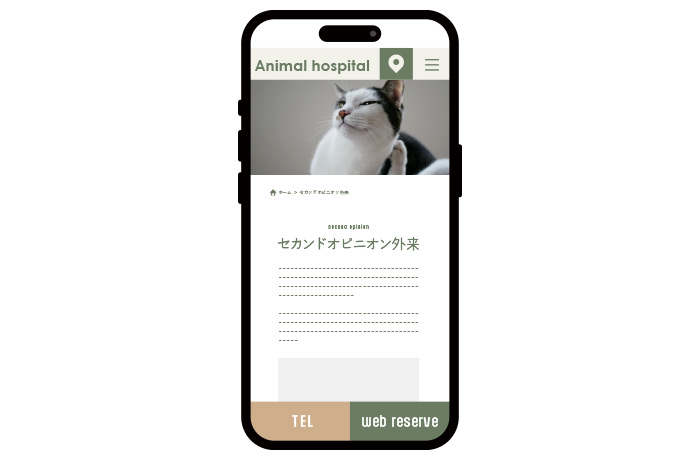 「動物病院 セカンドオピニオン」「犬 セカンドオピニオン 〇〇市」「猫 セカンドオピニオン 東京」「獣医 セカンドオピニオン」といったキーワードで上位表示を目指します。